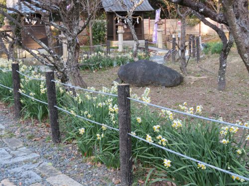 本殿東側の梅苑の周囲に植えられたスイセンが美しく咲いています