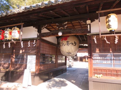 割拝殿には恒例の大提灯と御神燈も吊り下げられ