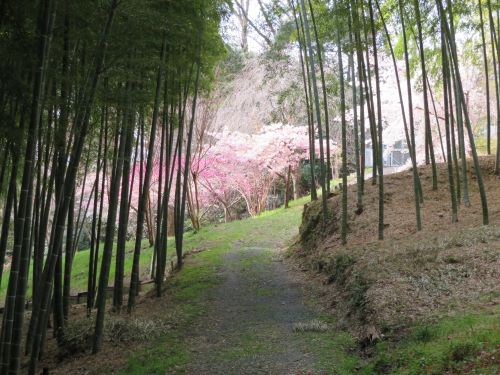 坂を上がった右手の野身神社から駐車場の崖下では